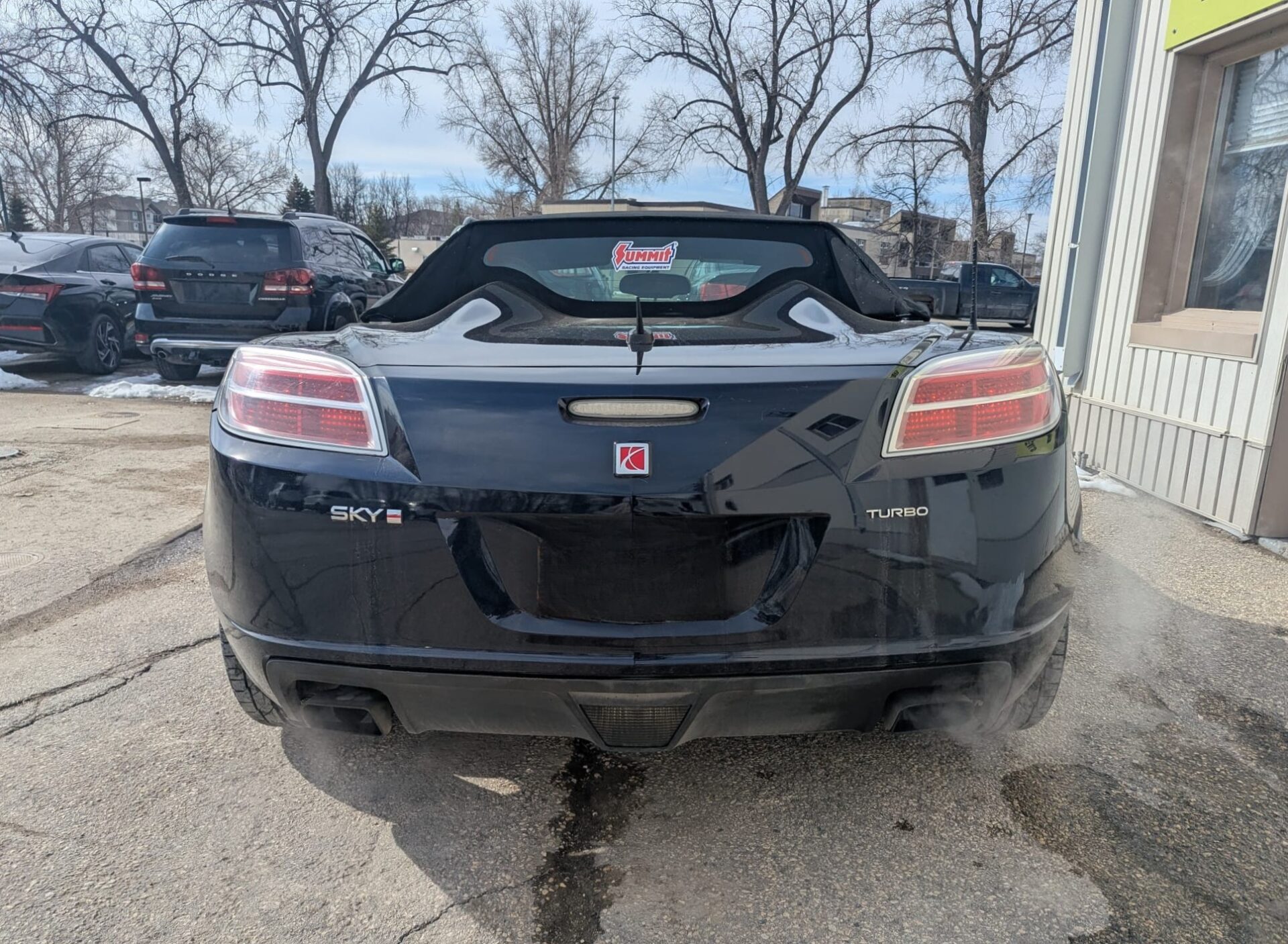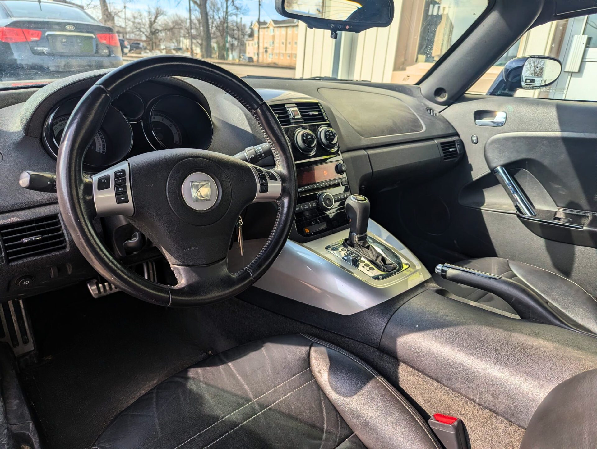 Inside, you’ll find comfortable leather seats with a clean layout. While this Sky is compact it’s sporty and comfortable