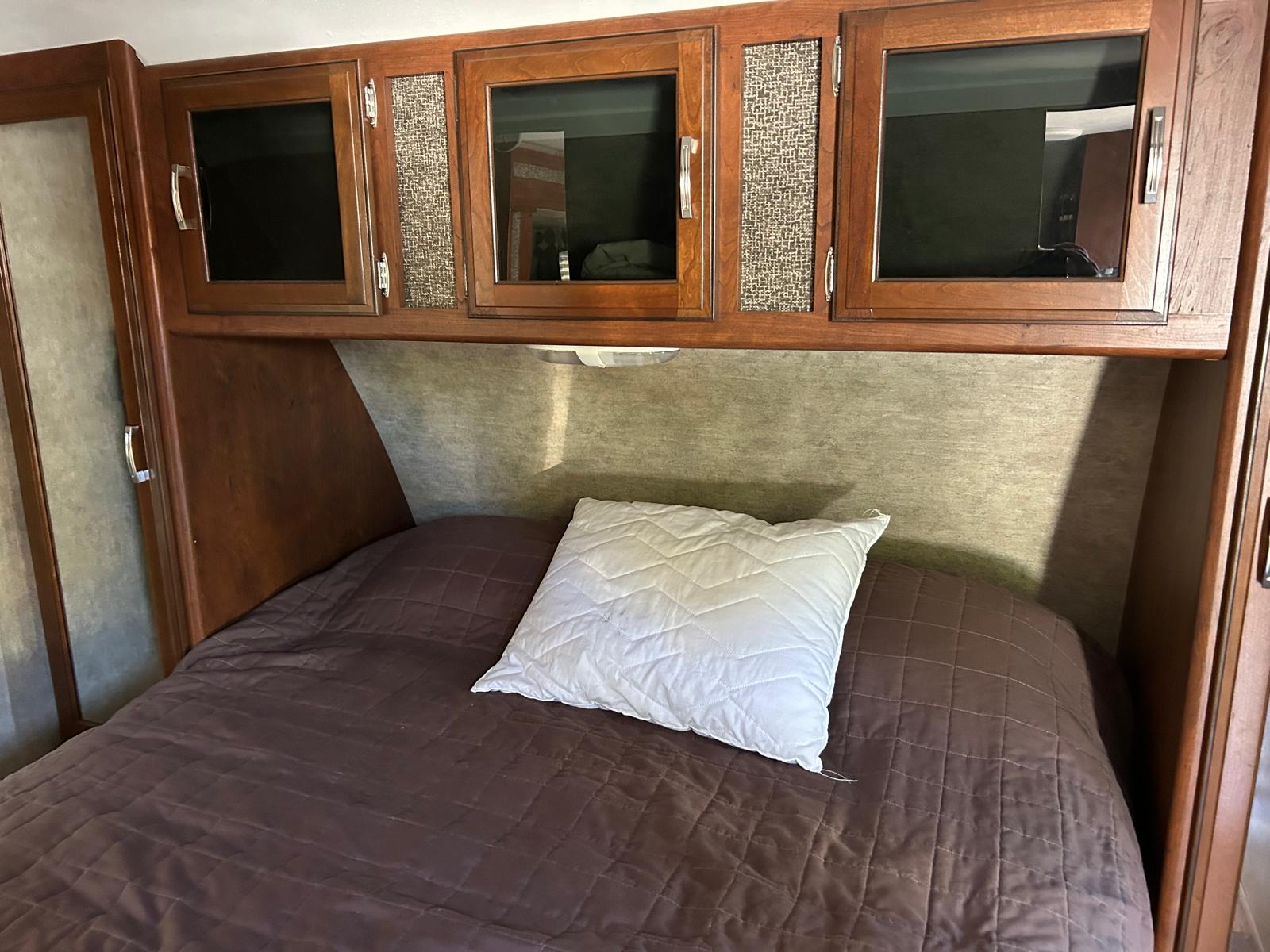 Some other features you’ll love includes air conditioning, a power awning, and stabilizer jacks and sway bars for smoother towing. You’ll also find generous storage options inside and out.