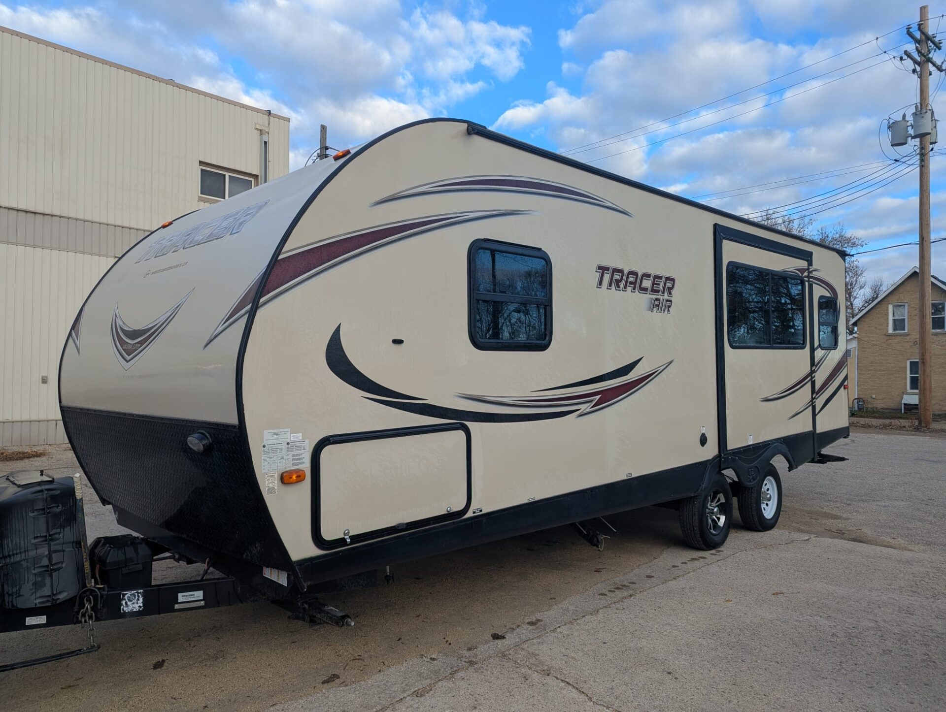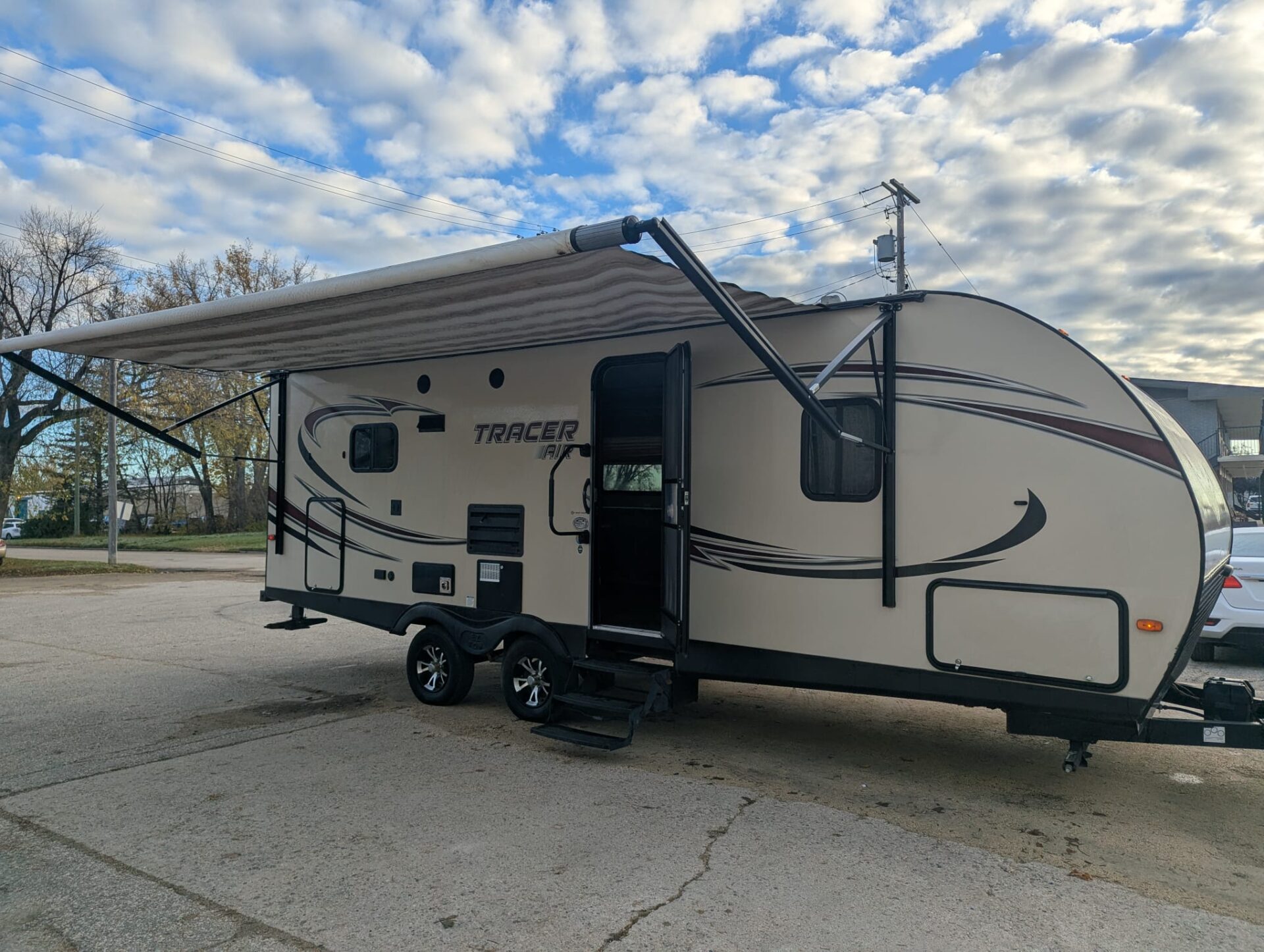Are you looking to exchange snow for sunshine and palm trees? With this 2017 Tracer Forest River Air Series M-248 AIR travel trailer you’ll be ready to hit the road.  It is the perfect blend of lightweight towability and premium comfort. 28’ long and with a dry weight of 4,945lbs, it’s the perfect size for adventurers and families who need extra features in a compact space. The power slide out for extra living space makes the trailer feel exceptionally spacious.